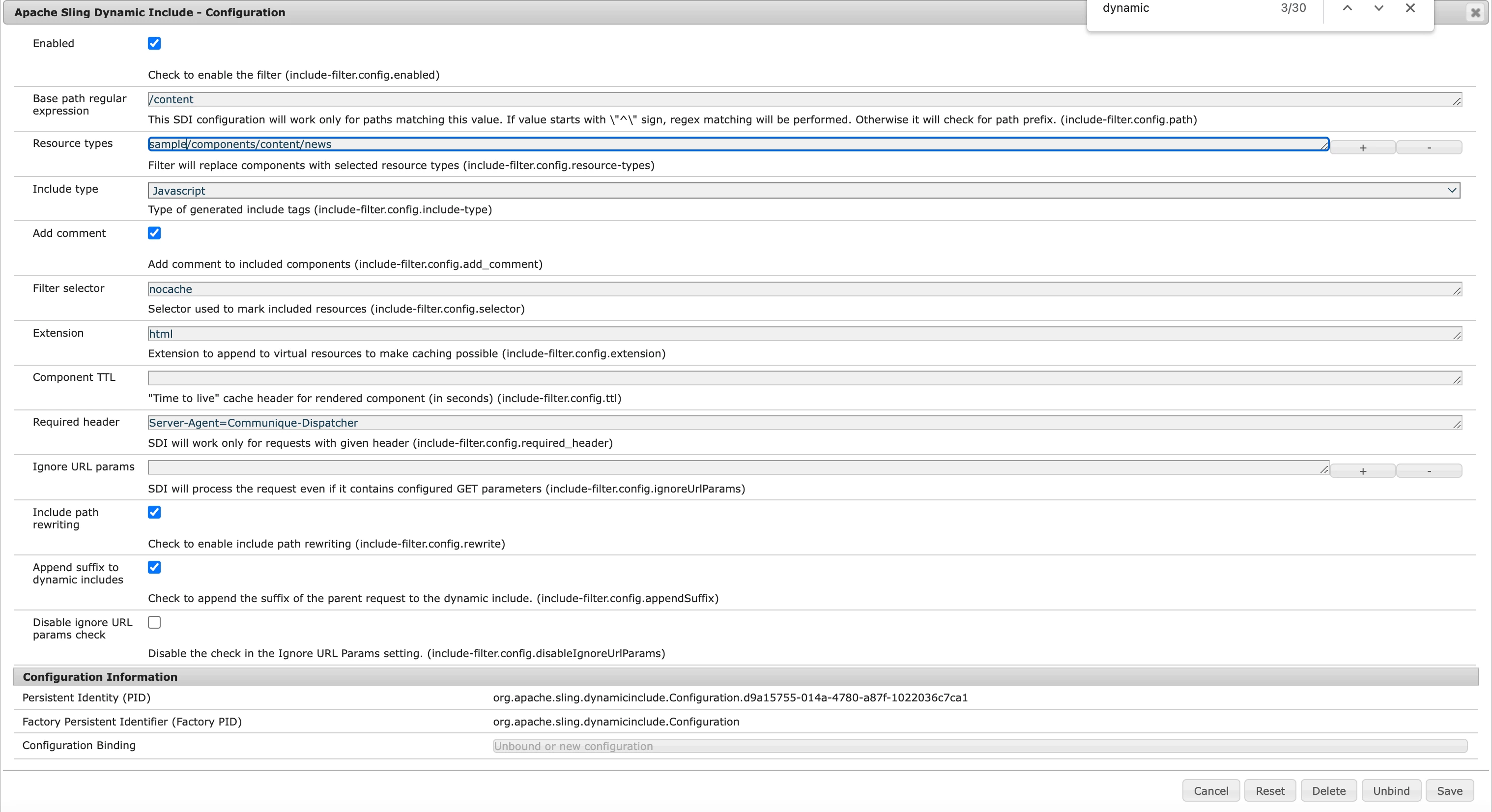 Adding ResourceType along with nocache.html in Sling dynamic include