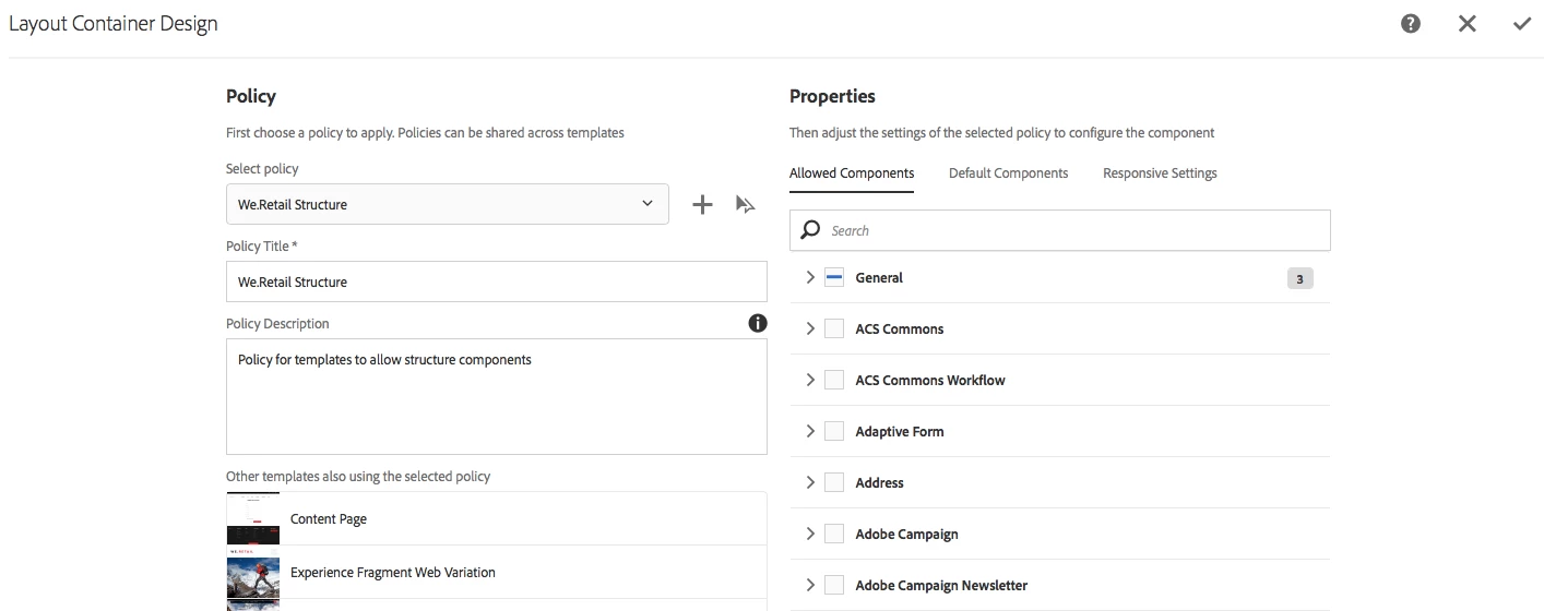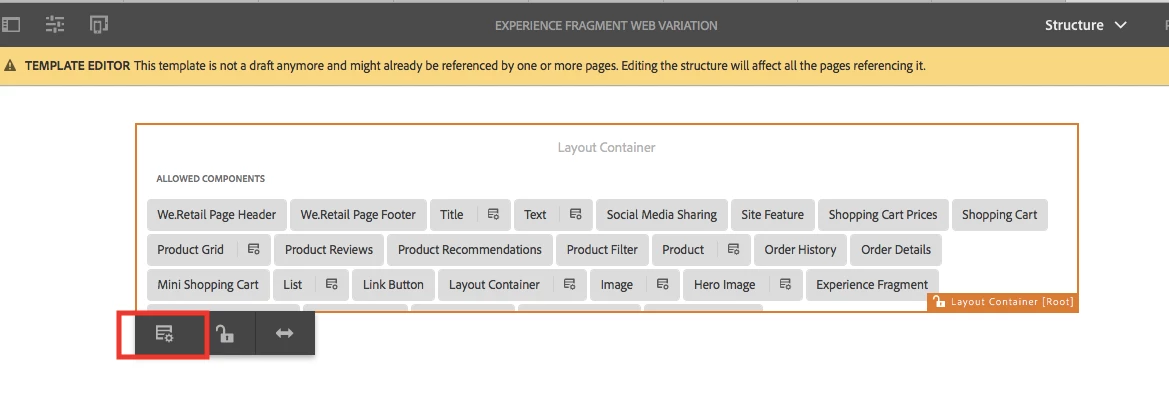 - How can I allow to the new template (or a Out of the Box template, I mean the "Experience Fragment - Web Template"), to use my custom components.?