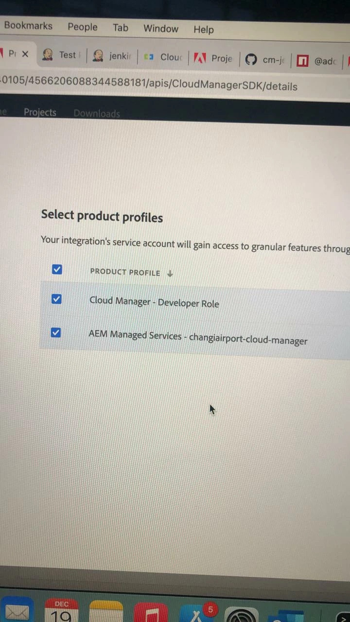 1. Created Integration at developer Console for Cloud Manager API.