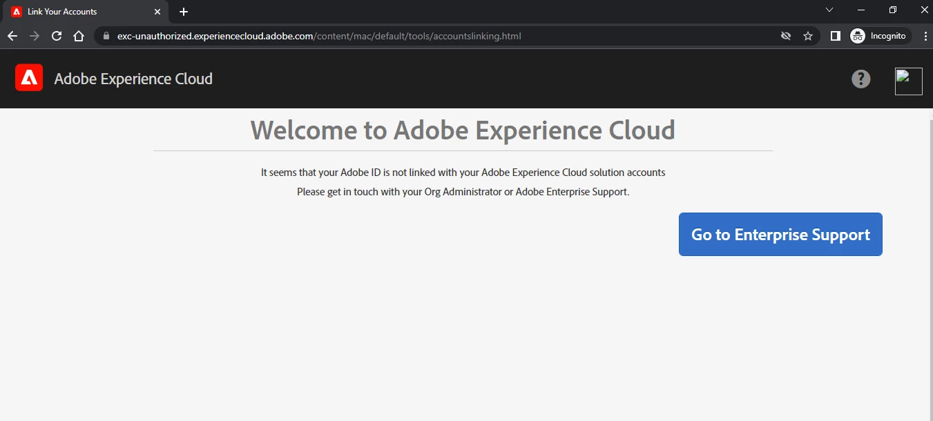 Adobe ID is not linked with your Adobe Experience Cloud solution accounts