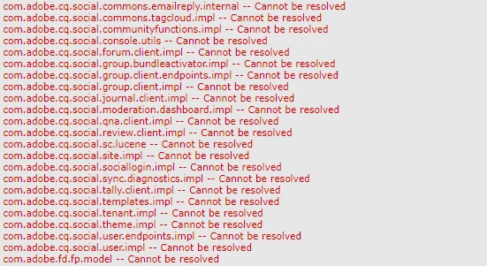 Our code builds successfully on having the uber jar, but one of the core bundle goes to installed state and lists many entries with "Cannot be Resolved".
