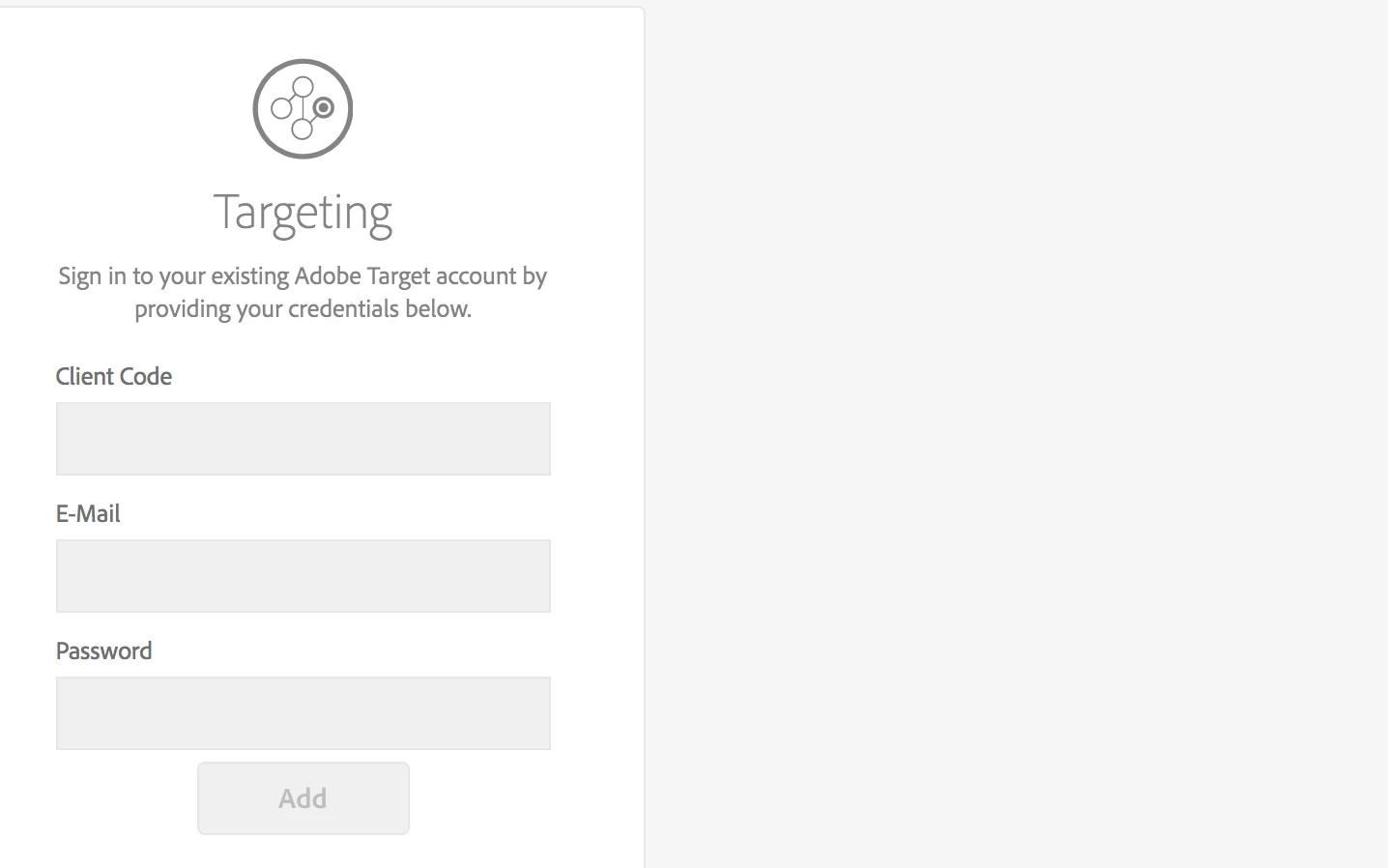 Click the Cloud Services tab, then from the Cloud Service Configuration drop-down list, select Adobe Target.