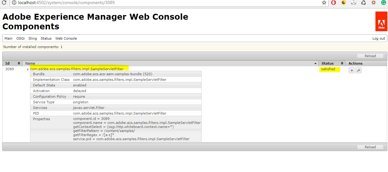 I'm trying to implement OSGI Filter Components, I deployed this bundle on my local: GitHub - Adobe-Consulting-Services/acs-aem-samples: AEM Code Samples repository and I'm testing this example: acs-aem-samples/SampleServletFilter.java at master · Adobe-Consulting-Services/acs-aem-samples · GitHub
