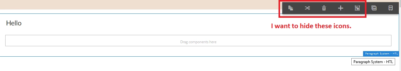 We just migrated our websites to AEM 6.3. I'm trying to solve an issue where the new Paragraph System - HTL in 6.3 is showing all icons in the component context. In 6.2, these are all hidden except for the Parent icon. I tried to add a property to the parsys, cq:noDecoration=true, but didn't work. Can somebody probably had this issue before?