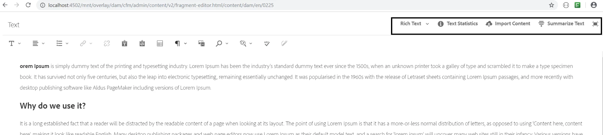 [AEM 6.4.4] How to add Summarizing Text to Content Fragments ?