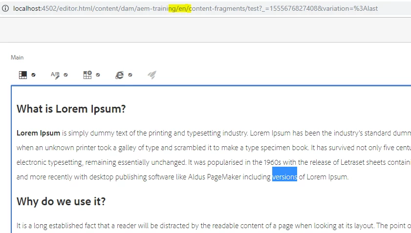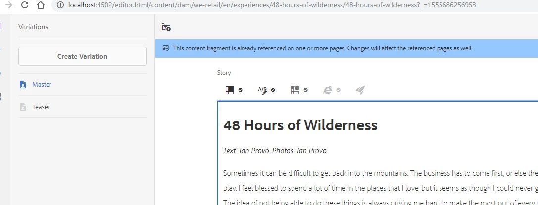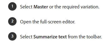 I am trying to add summarizing text to the Content Fragment according to this Variations - Authoring Fragment Content documentation. I am not getting any option as per the documentation. It says
