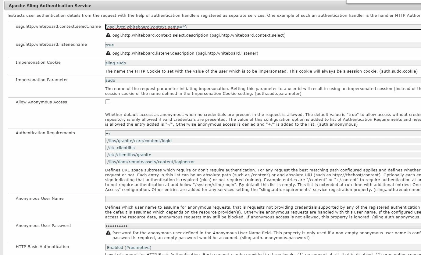 *INFO* [qtp691096566-2507] org.apache.sling.auth.core.impl.SlingAuthenticator getAnonymousResolver: Anonymous access not allowed by configuration - requesting credentials