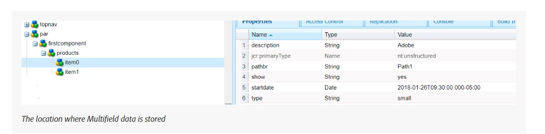 AEM 6.4 - Need Multifield example which stores data in Node format