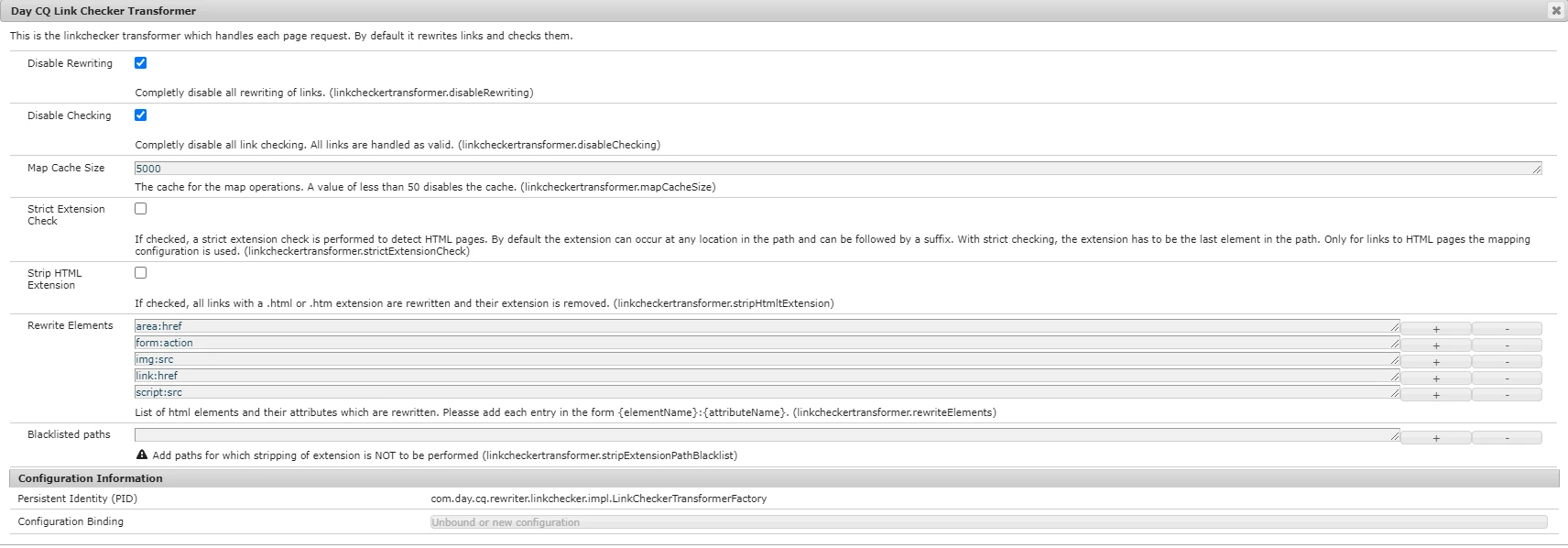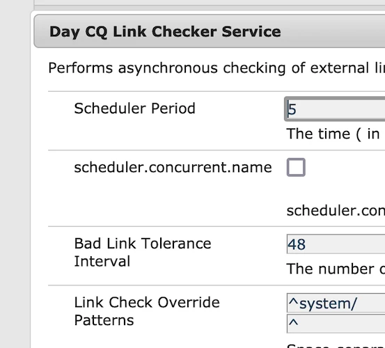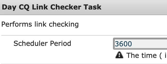 - Day CQ Link Checker Task/Scheduler Period = 3600 seconds (though I do not this should matter since I supposedly disabled link checking?)