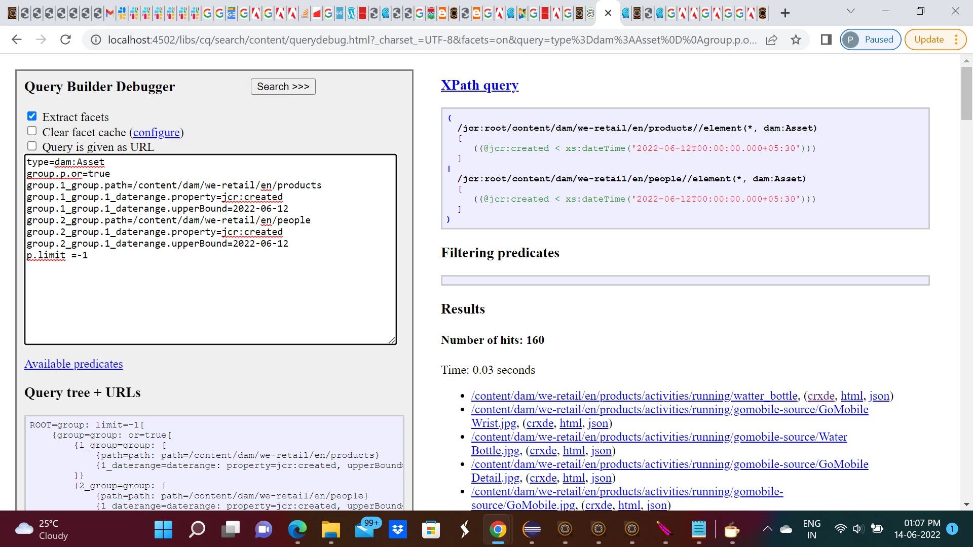 AEM 6.5.8 and 6.5.12- Querybuilder -Group daterange and path