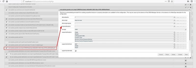 We tried to update our CORS configuration in AEM 6.5.0.0 according to this help article: Adobe Experience Manager Help | Understanding Cross-Origin Resource Sharing (CORS) with AEM .
