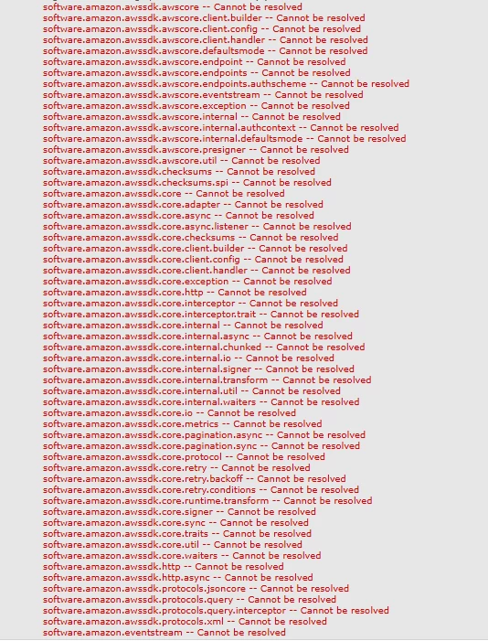 I am trying to use AWS SDK Java 2.0 for S3 file read inside AEM servlet. I am using embed-dependency concept of maven-bundle-plugin. Able to read S3 file with the below three AWS dependencies in standalone maven project. However it is throwing lot of dependency issues while using with AEM. Has anyone implemented it on AEM successfully ?