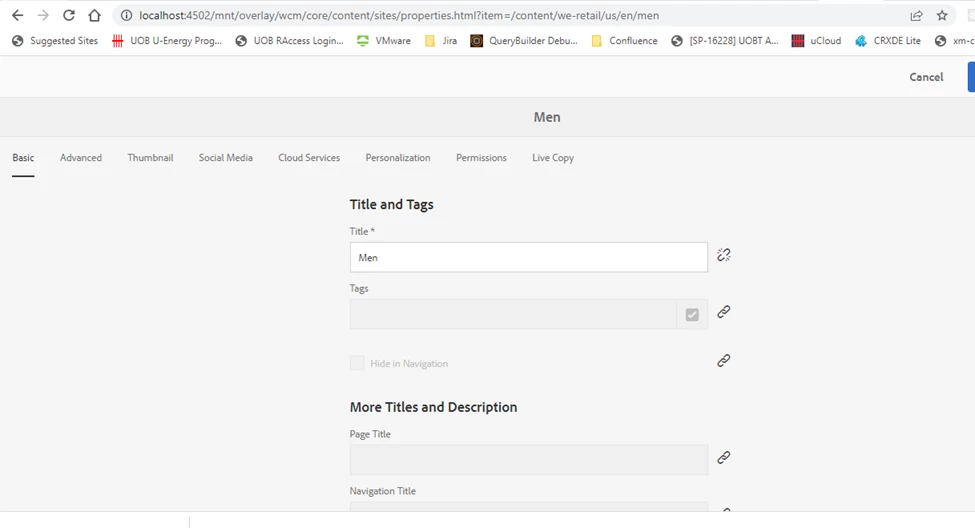 AEM 6.5 Page properties page is showing blank