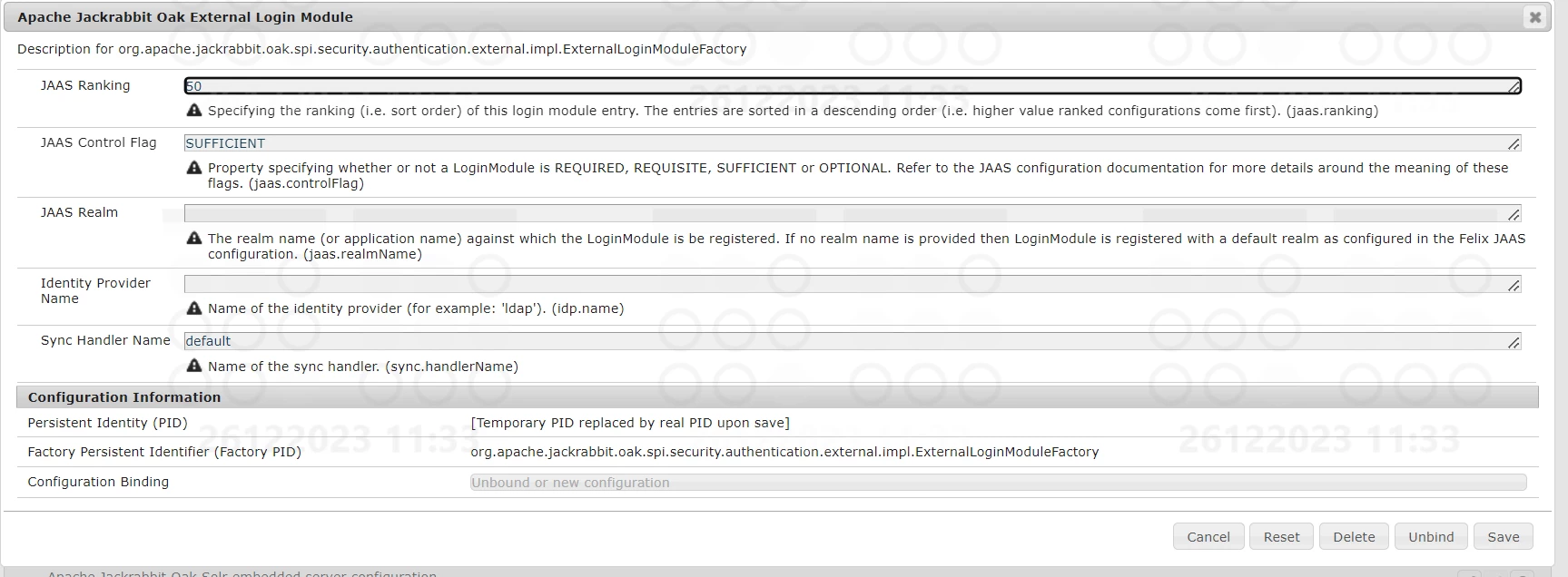 23.12.2023 18:55:20.765 *ERROR* [qtp192556687-70] org.apache.jackrabbit.oak.spi.security.authentication.external.impl.ExternalLoginModule No IDP found with name 0654f74c177ec80b60f7922a9a6195cf. Will not be used for login.