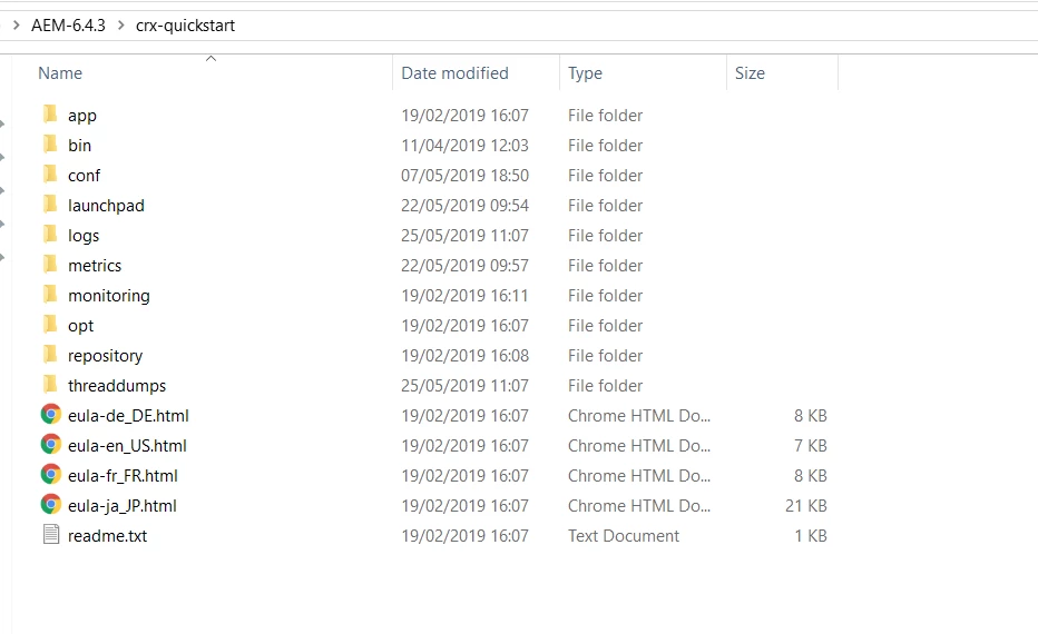 Can someone help me to understand what exactly the role of each folder inside crx-quickstart/, also what is available in each folder.