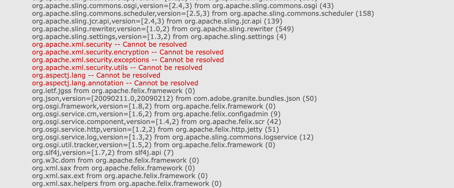 We are upgrading our AEM 6.4.7 with jdk 8 instance to AEM 6.5.17 with jdk 11 and I am not able to resolve below dependancies. I dont see any of these import statements in our project. any help greatly appreicated.