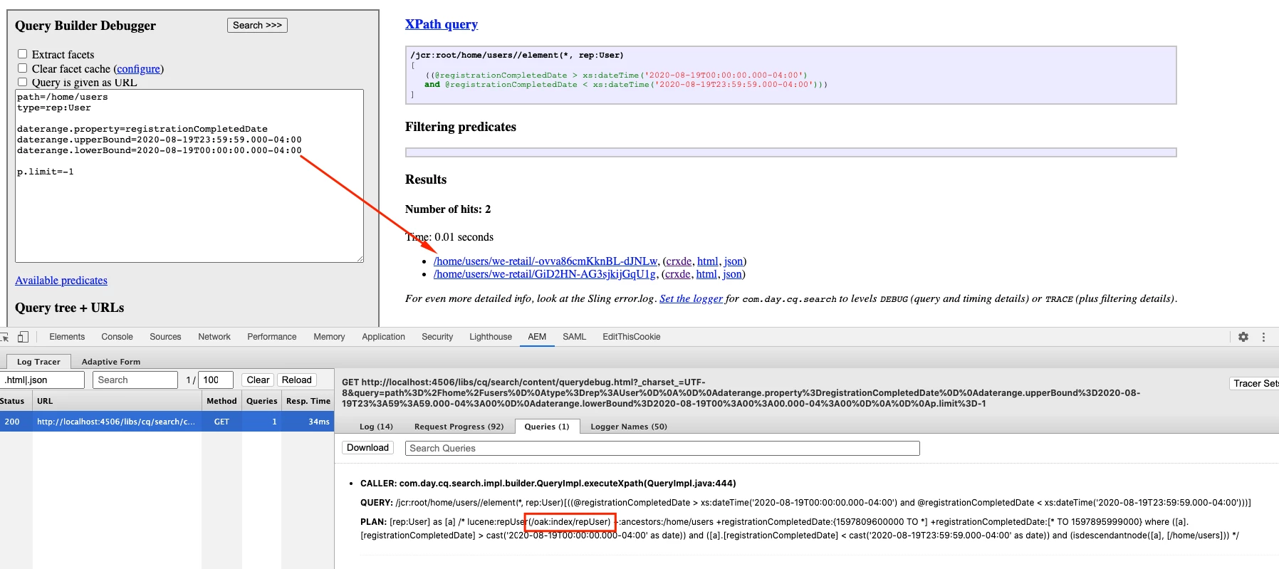 I have the below query I am using in /libs/cq/search/content/querydebug.html to check the results