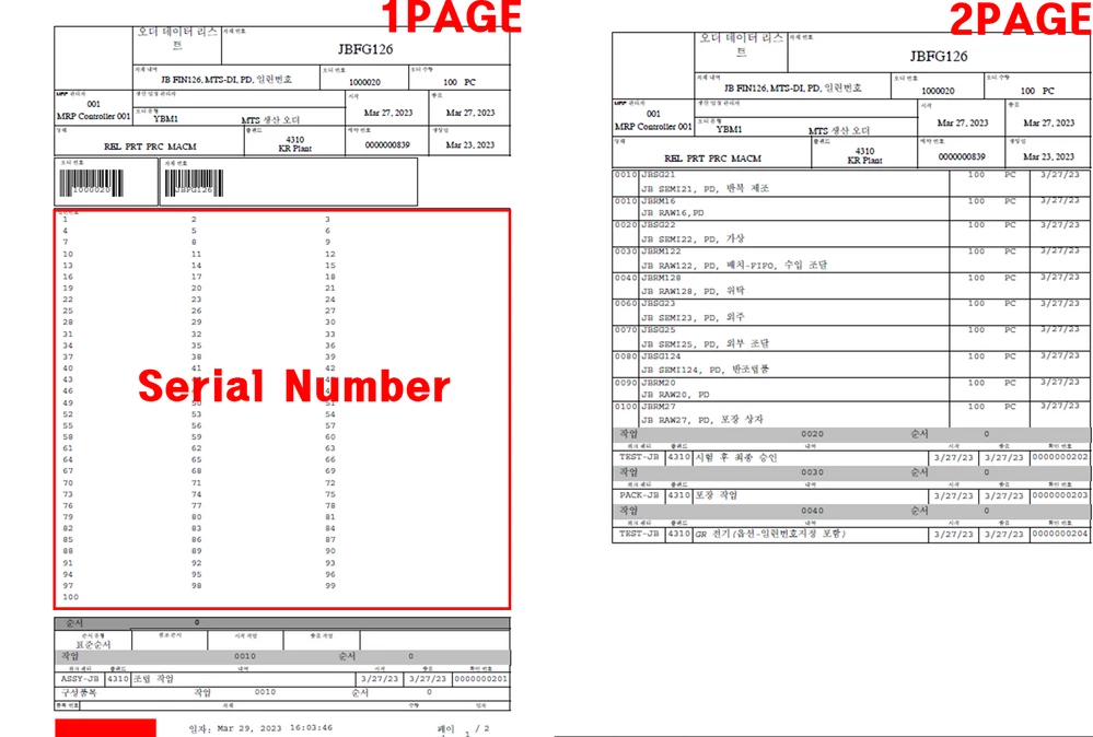 Even if the order quantity is 100, I want to do it in such a way that only one serial number appears in the document, so that each paper has a different serial number so that a total of 100 papers appear. It will be easier to understand if you refer to the picture below
