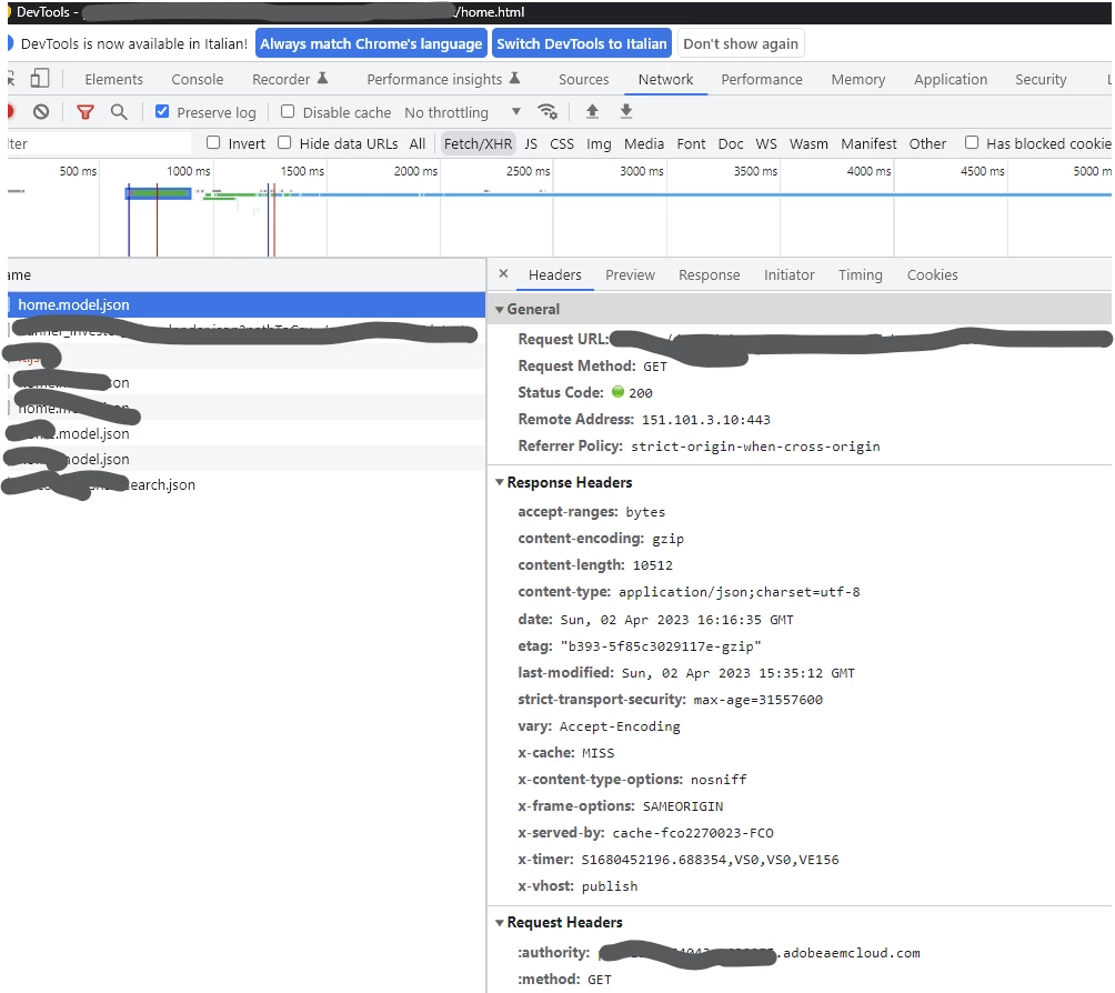 I underline that we changed also a value that usually we can see in every headers (X-Vhost), just to see if our changes were digested...nothing! Network tracking always show default Response Headers! Even the VHost, as you can see,