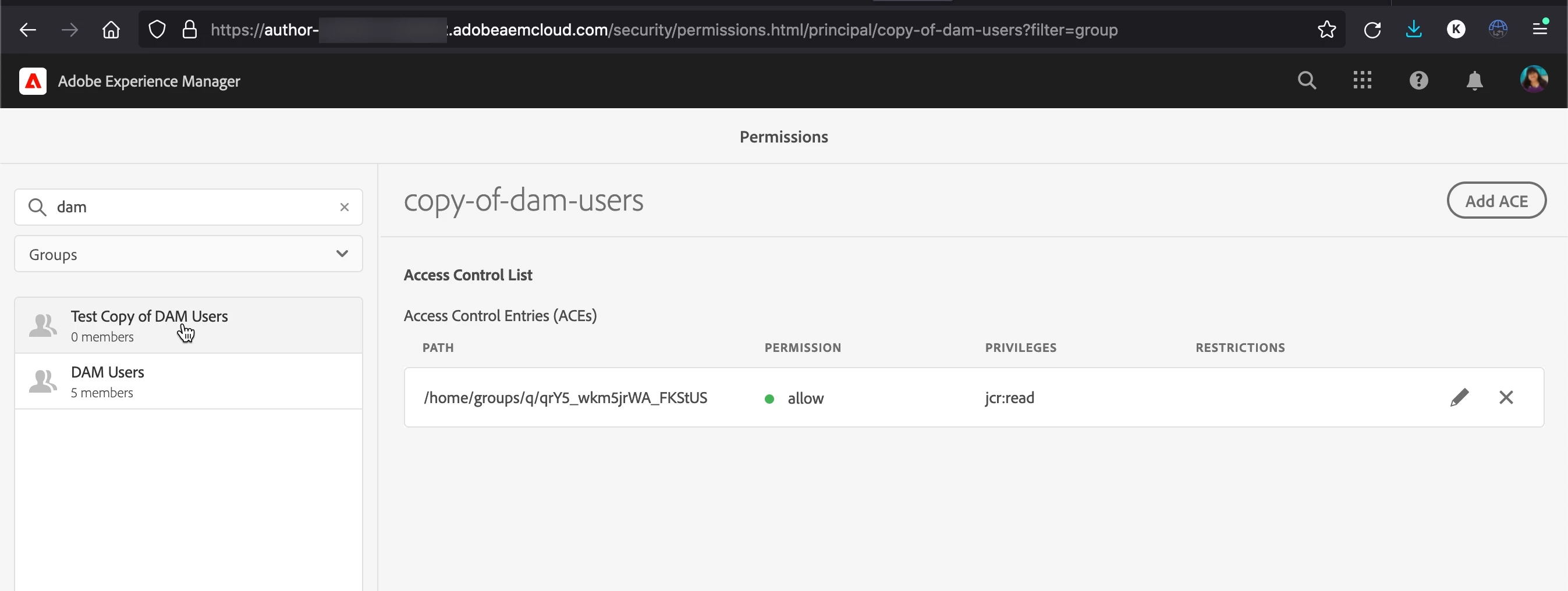 I tried selecting the group and using the "Copy" function on the toolbar on the out of the box DAM Users group that has many ACL entries and 5 members, however the new group it created didn't have any members or ACL entries. Not sure what Copy does that is different from just creating a new group?