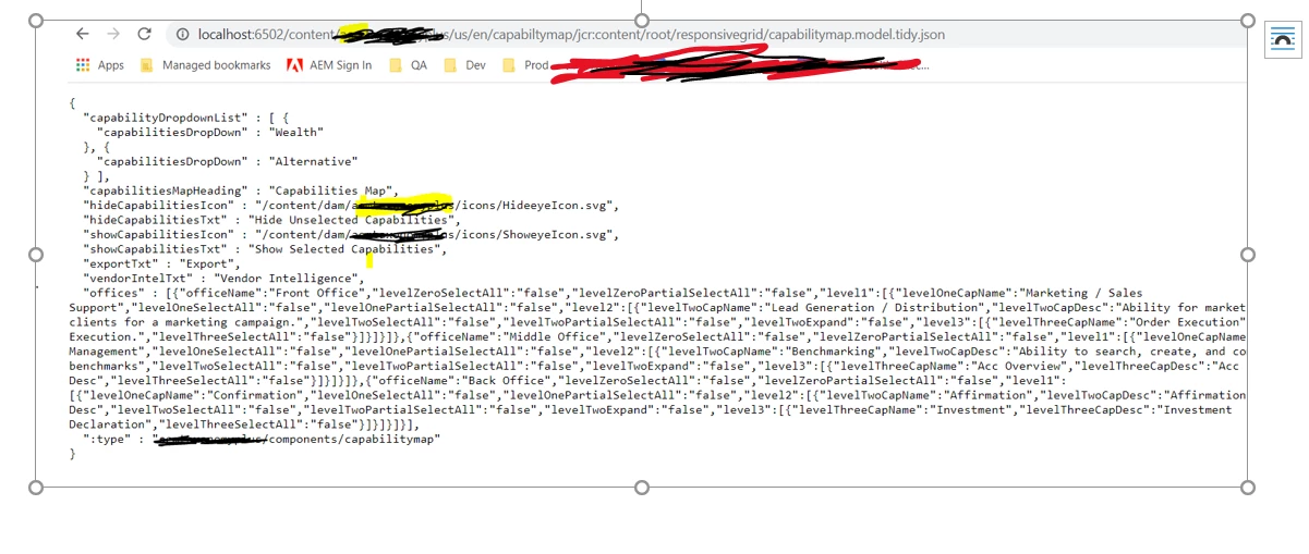 I am using nested multifield in AEM SPA with react .When I am trying to access the <page url>.model.json, nothing is rendered. But, when I try to retrieve with component node path,<page-node-path>.model.json, then it returns the component json.