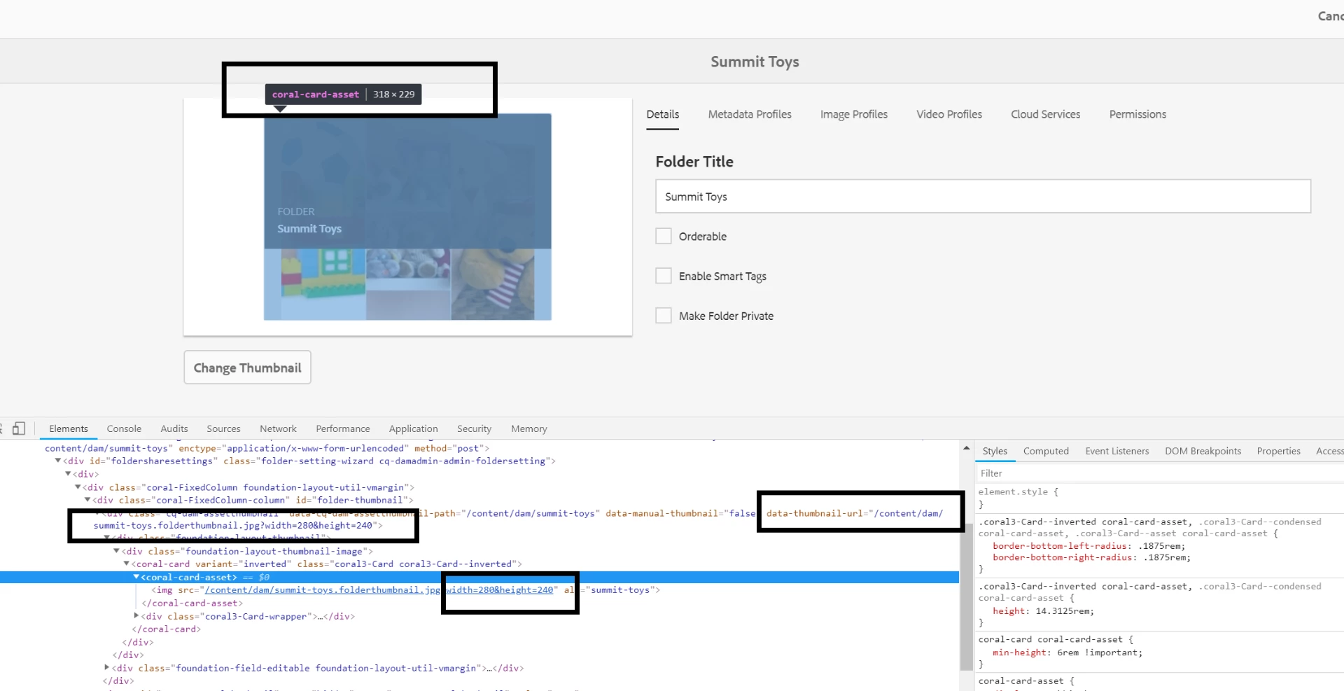 AEM Asset Folder > Custom thumbnail expected size
