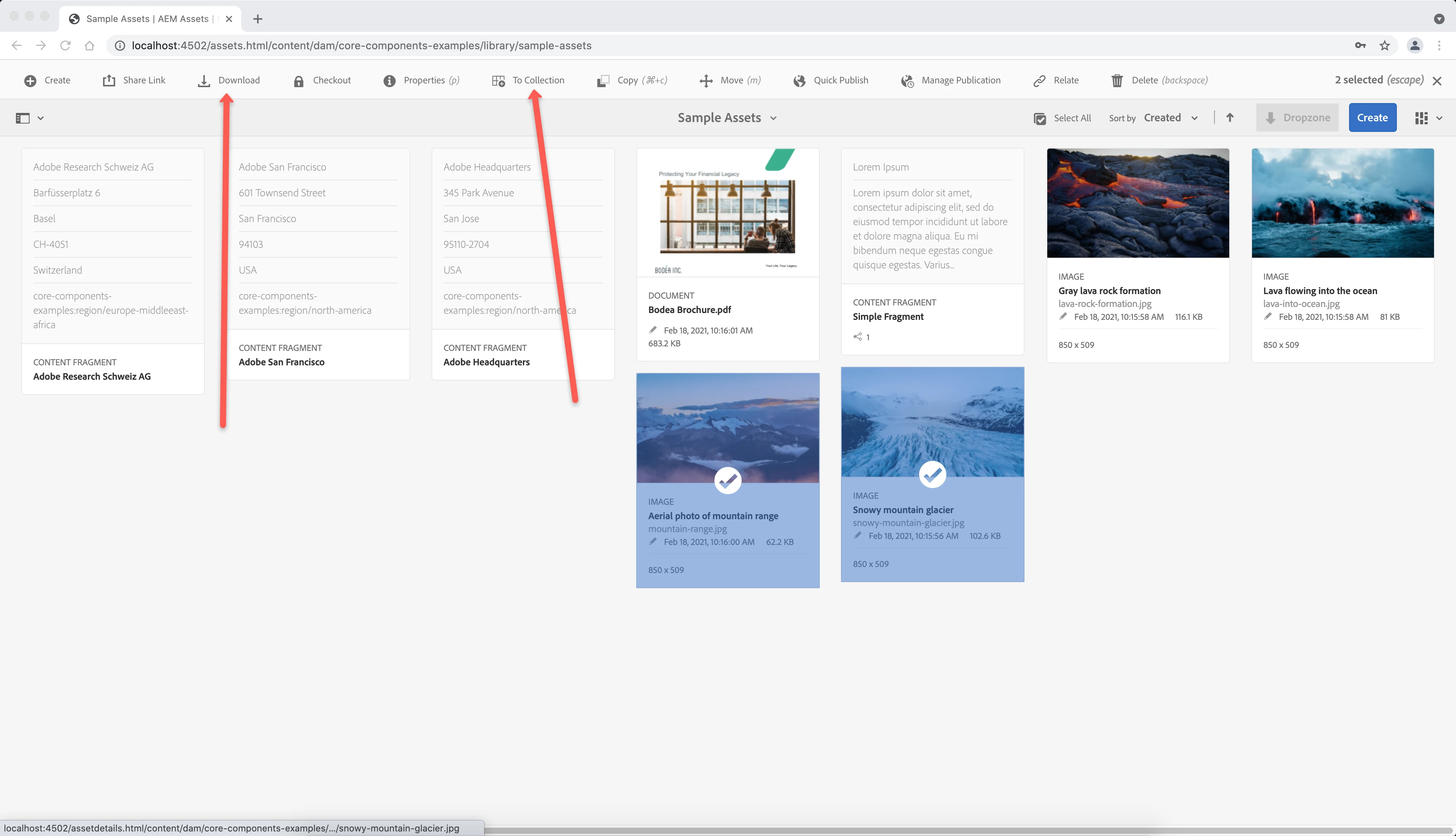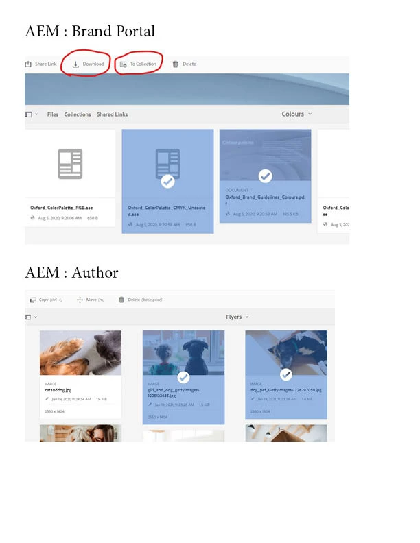AEM Author environment : multiple download and to collection option
