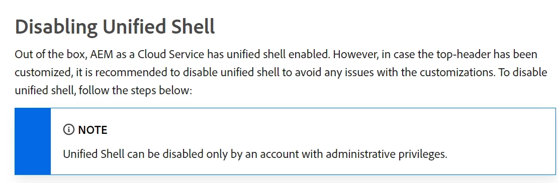 AEM author header custom UI change after enabling unified shell in AEMaaCS