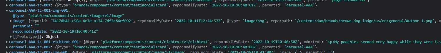 The Adobe Analytics data layer (data-cmp-data-layer) is picking up the clones and printing the parentID as null in the analytics layer even though the "ID" attribute is present in the component's HTML and Sling Model.