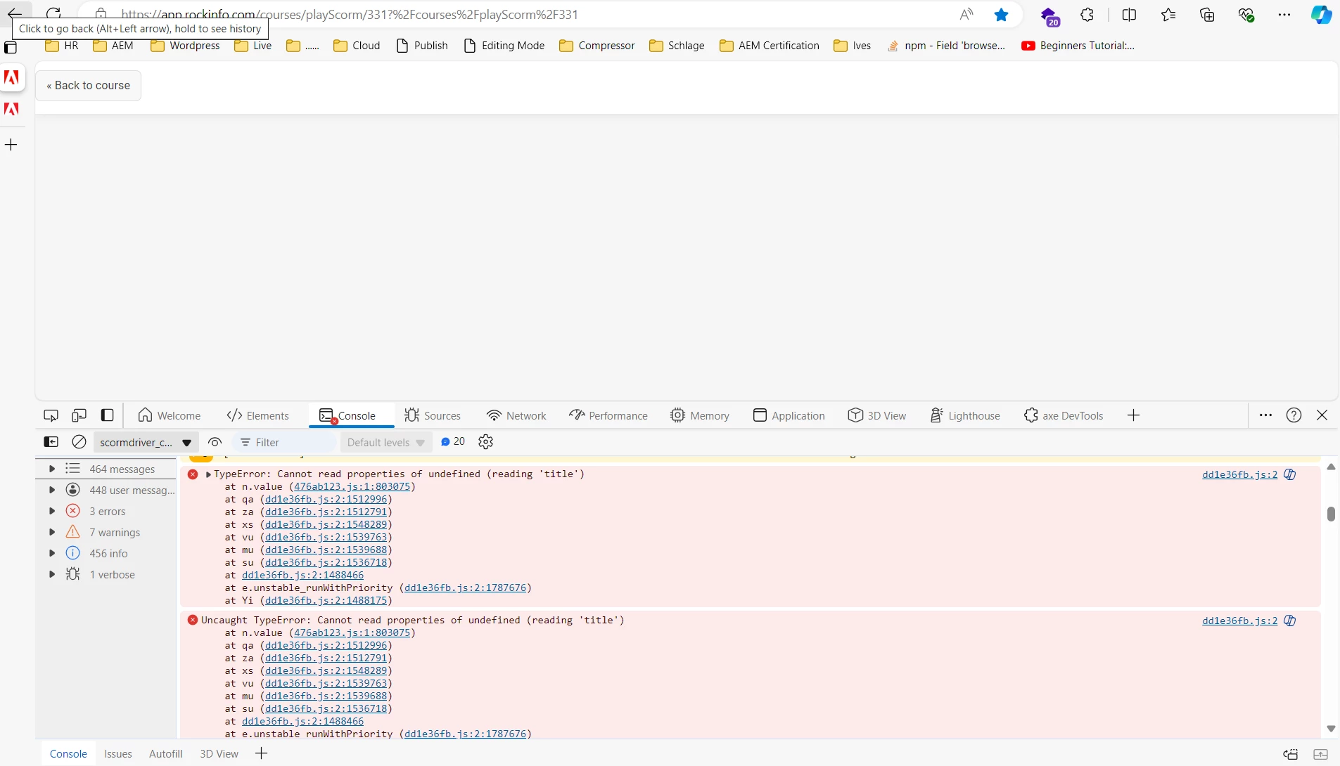 AEM certifaction website not loading have an error on it's console needs to be resolved