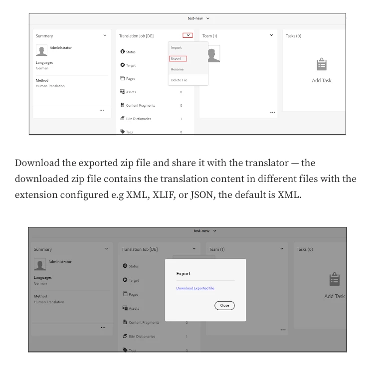 Human translation: Content is sent to your translation provider and translated by professional translators. When complete, the translated content is returned and imported into AEM. When your translation provider is integrated with AEM, content is automatically sent between AEM and the translation provider.
