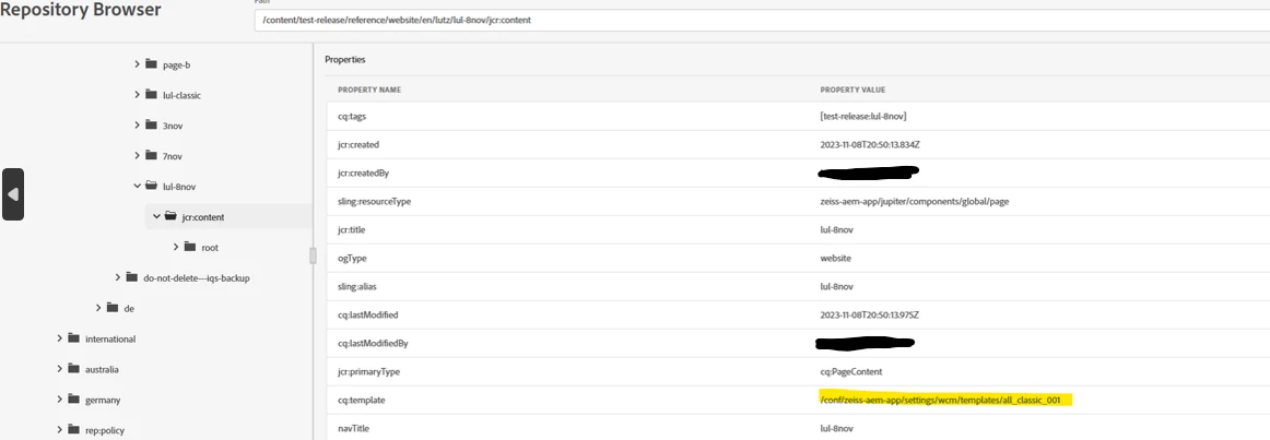 | Use-case: | If I lock for a page and want to check which cq:template is assigned, I would like to copy the value of cq:template property and past this path into oath browser of the Repository Browser in order to check this node. Example attached. |
