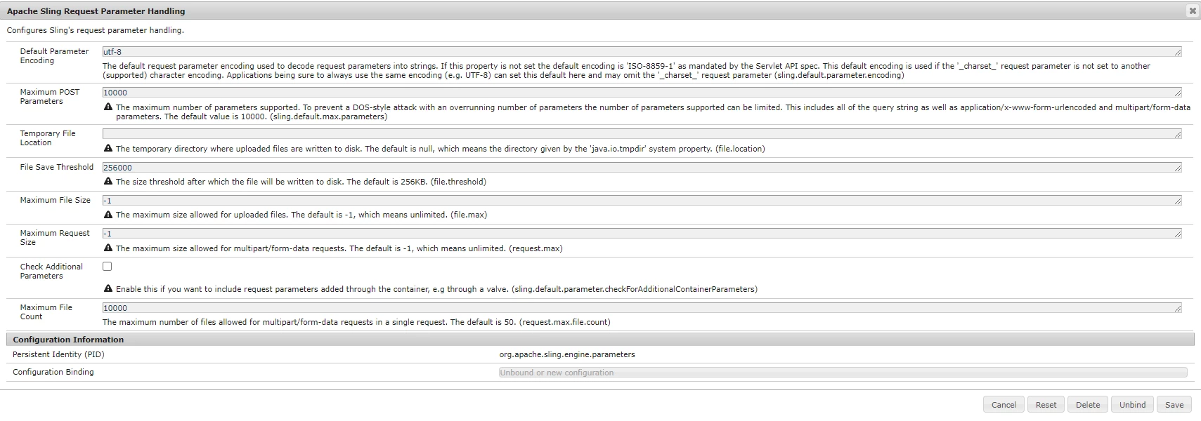 I cannot receive Chinese query parameter in Servlet because of charset issues, but after I set Apache Sling Request Parameter Handling OSGi configuration, nothing changes, why?