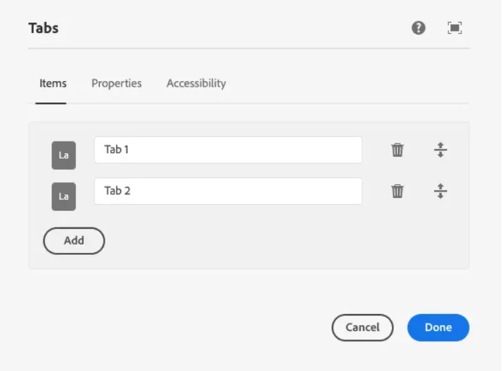 | Improved/Expected Behavior: | A composite field support for the Panel Container so that author can choose the indivudal tab item , and also have the ability to add icons for each Tab Item / Accordion Item |