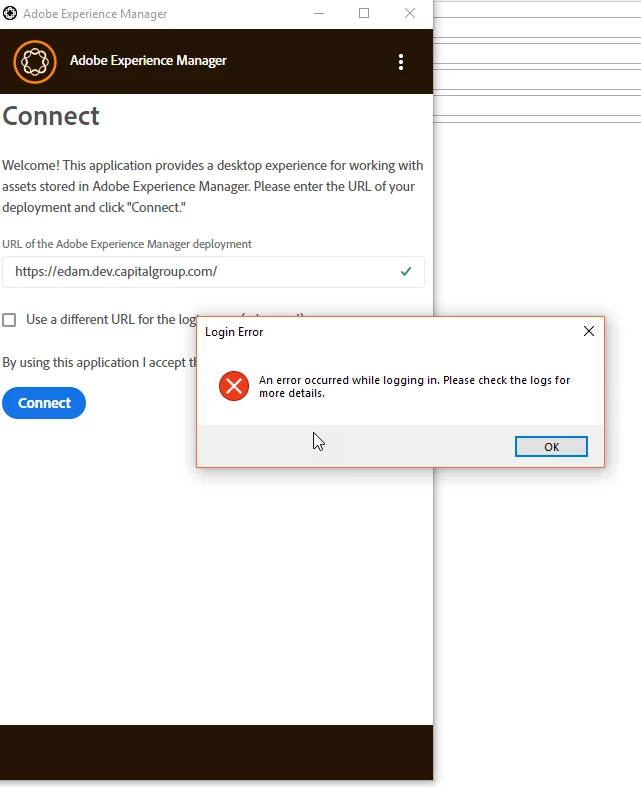 AEM Desktop Application Login Error