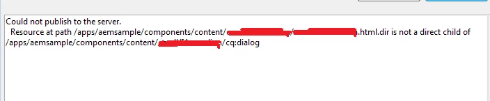 I am using AEM Developer Tool to sync the content. I created a component in CRXDE light and imported it to the eclipse using "Import from Server". Once I edit it in eclipse and try to "Export to Server" I am getting below error.