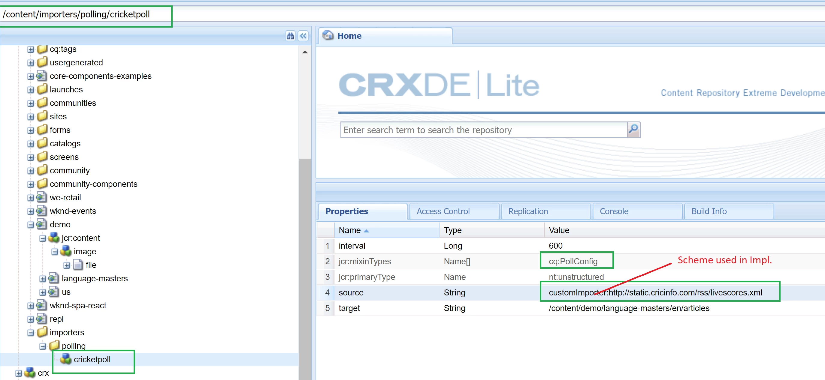 - scheme mentioned here in config should match the custom implementation property - Importer.SCHEME_PROPERTY.
