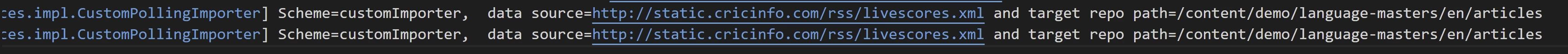 private static final Logger LOG = LoggerFactory.getLogger(CustomPollingImporter.class);