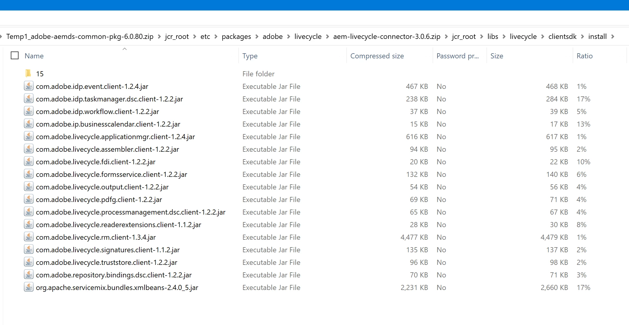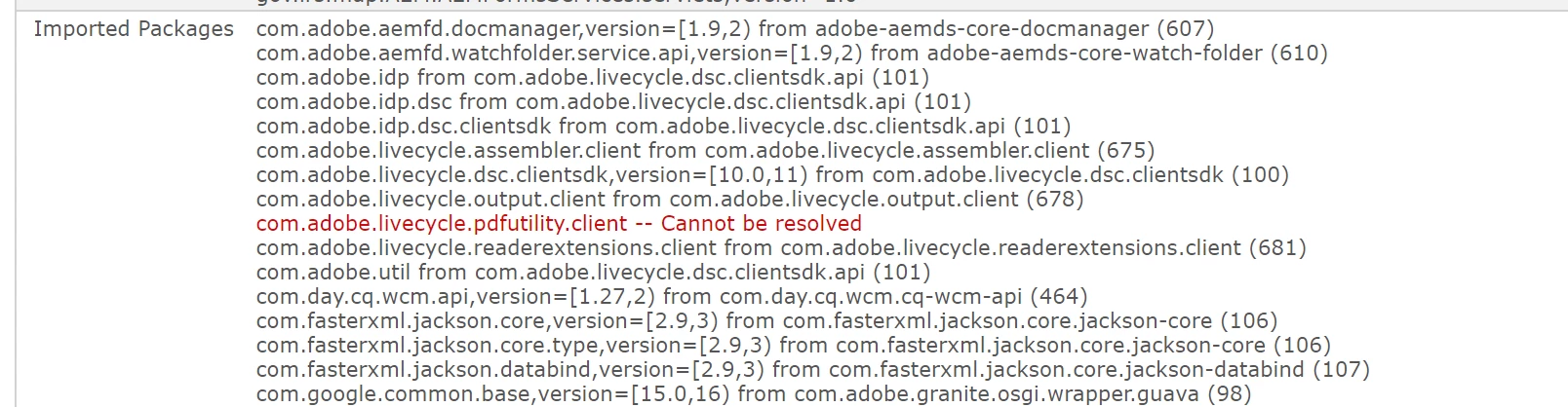AEM Forms - Adobe LiveCycle - Retrieving PDF document properties using the Java API - com.adobe.livecycle.pdfutility.client -- Cannot be resolved