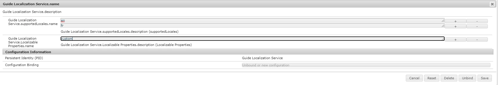 AEM forms Guide Localization Service runmode configuration is not binding.