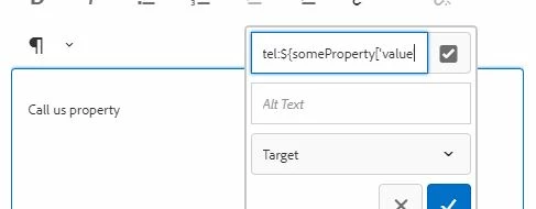 I have a requirement where I need to add a property in the below format for a tel: attribute as phone number in a tag for RTE. Note :- tel: prefix is enabled in Day CQ Link Checker Service, so normal tel: numbers will work fine.