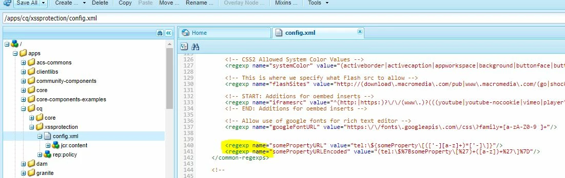 1. Added the below regex to /apps/cq/xssprotection/config.xml