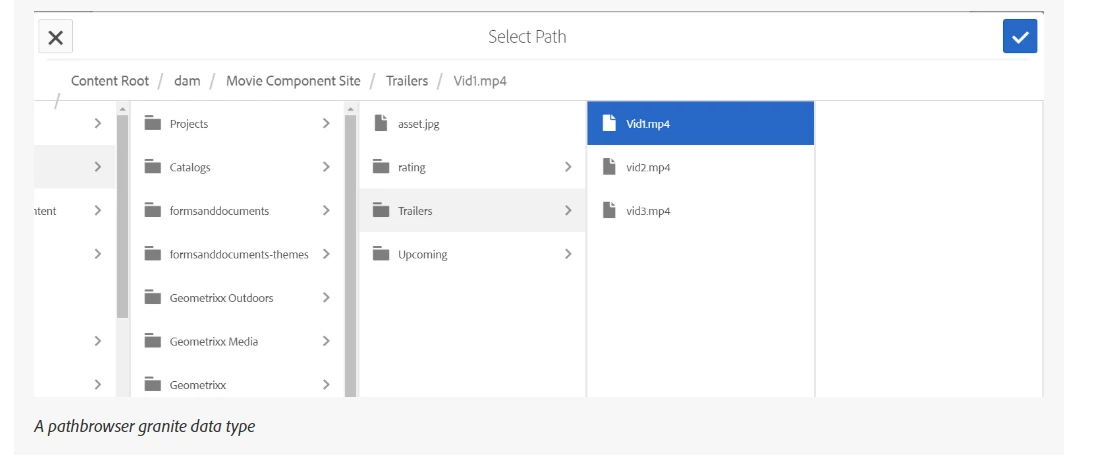 Is there anyway to link to a PDF document loaded within the DAM via dialog for a component? There are different examples of referencing images and pages via a dialog but none for assets such as pdf. The only place I've seen where you can browse and link to pdf's is via the rich text editor...which isn't very intuitive for specific custom components.