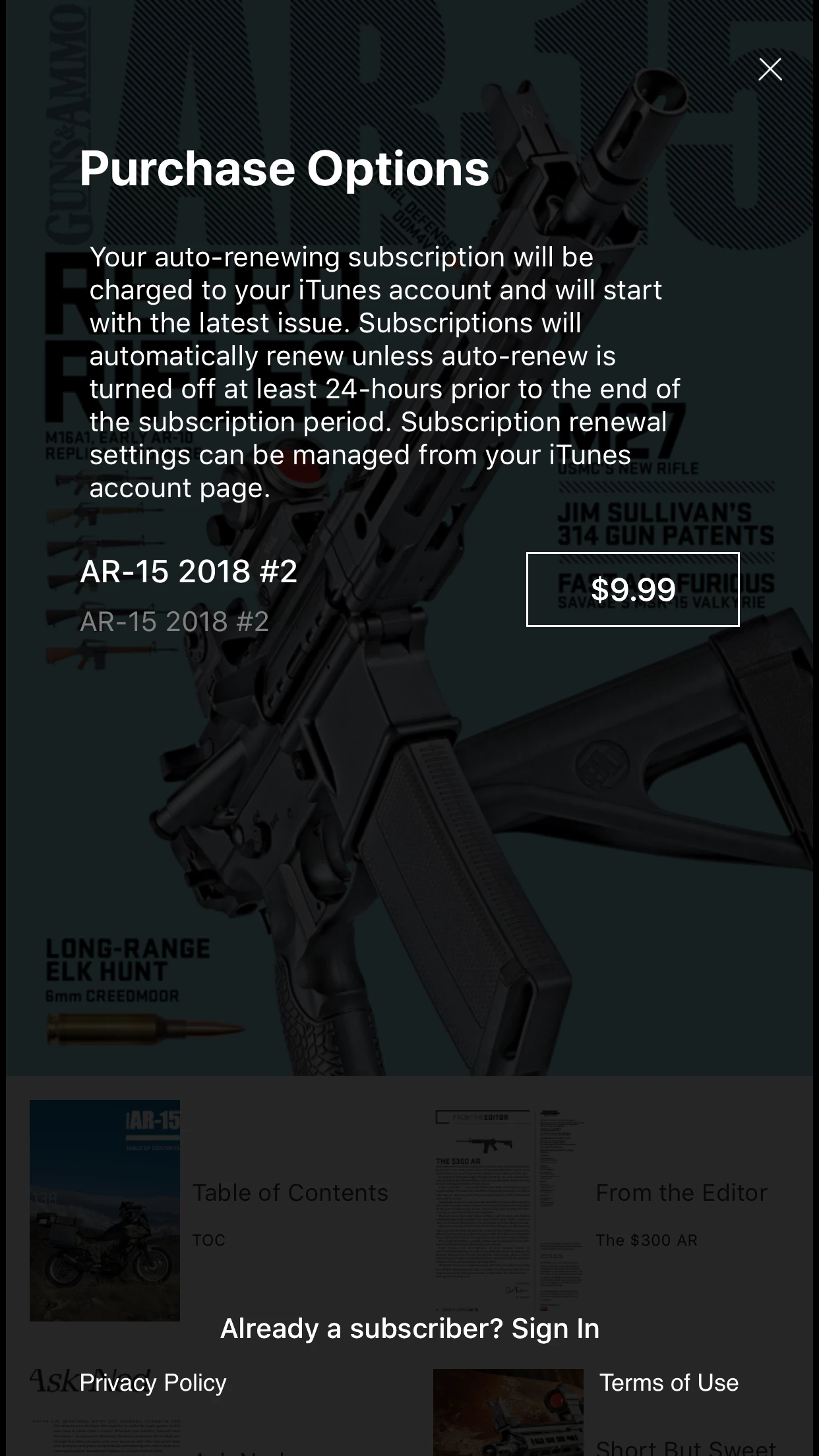 "Your auto-renewing subscription will be charged to your iTunes account and will start with the latest issue. Subscriptions will automatically renew unless auto-renew is turned off at least 24-hours prior to the end of the subscription period. Subscription renewal settings can be managed from your iTunes account page." = "Your auto-renewing subscription will be charged to your iTunes account and will start with the latest issue. Subscriptions will automatically renew unless auto-renew is turned off at least 24-hours prior to the end of the subscription period. Subscription renewal settings can be managed from your iTunes account page.";