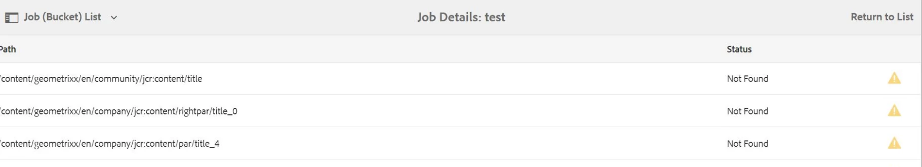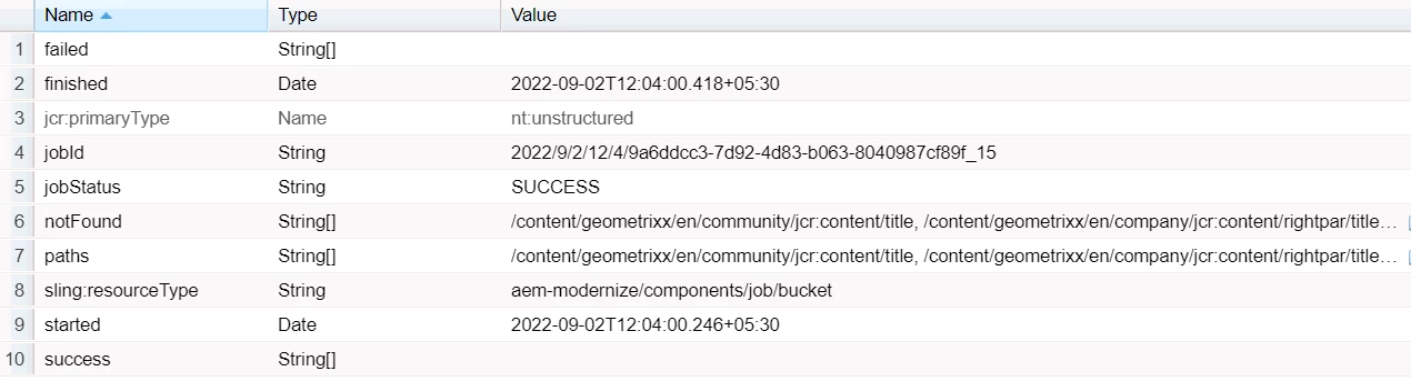 AEM Modernize Tool - Bucket List-Status - Not Found