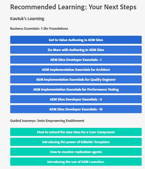 Similarly the following link has grouped articles but still its information overload with no set of articles to show as to what is needed to call myself AEM ready