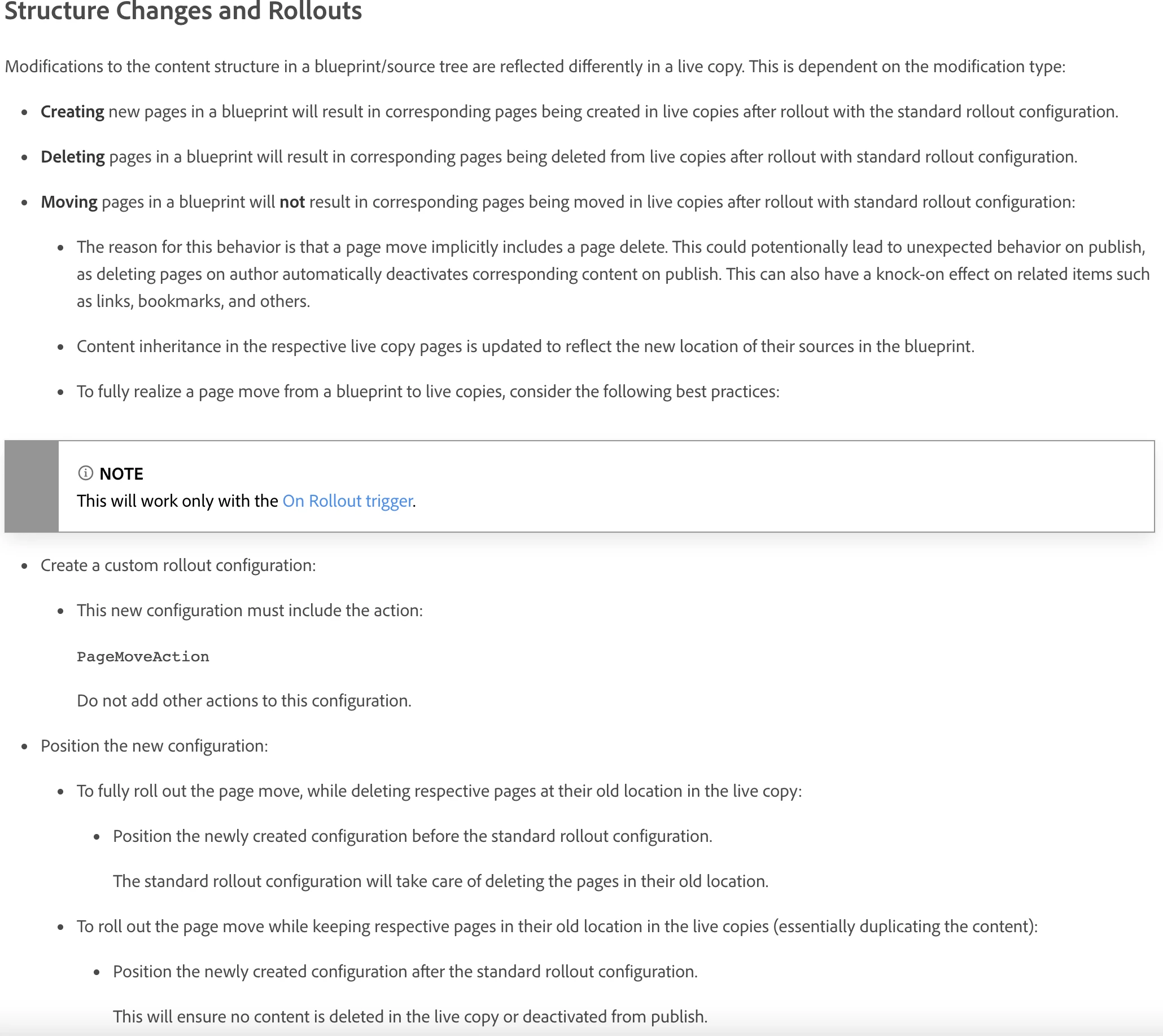 AEM Pages movement which are in MSM - Recommendations