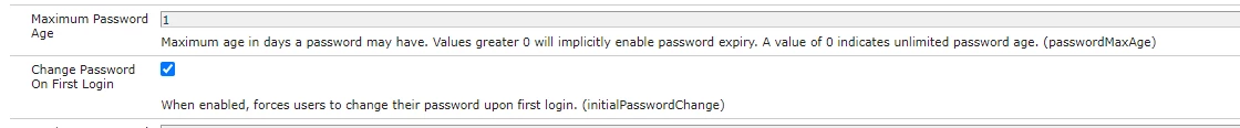 So, I enable the user first login to change the password and put the number of days for the password to expired in the OSGi configuration.