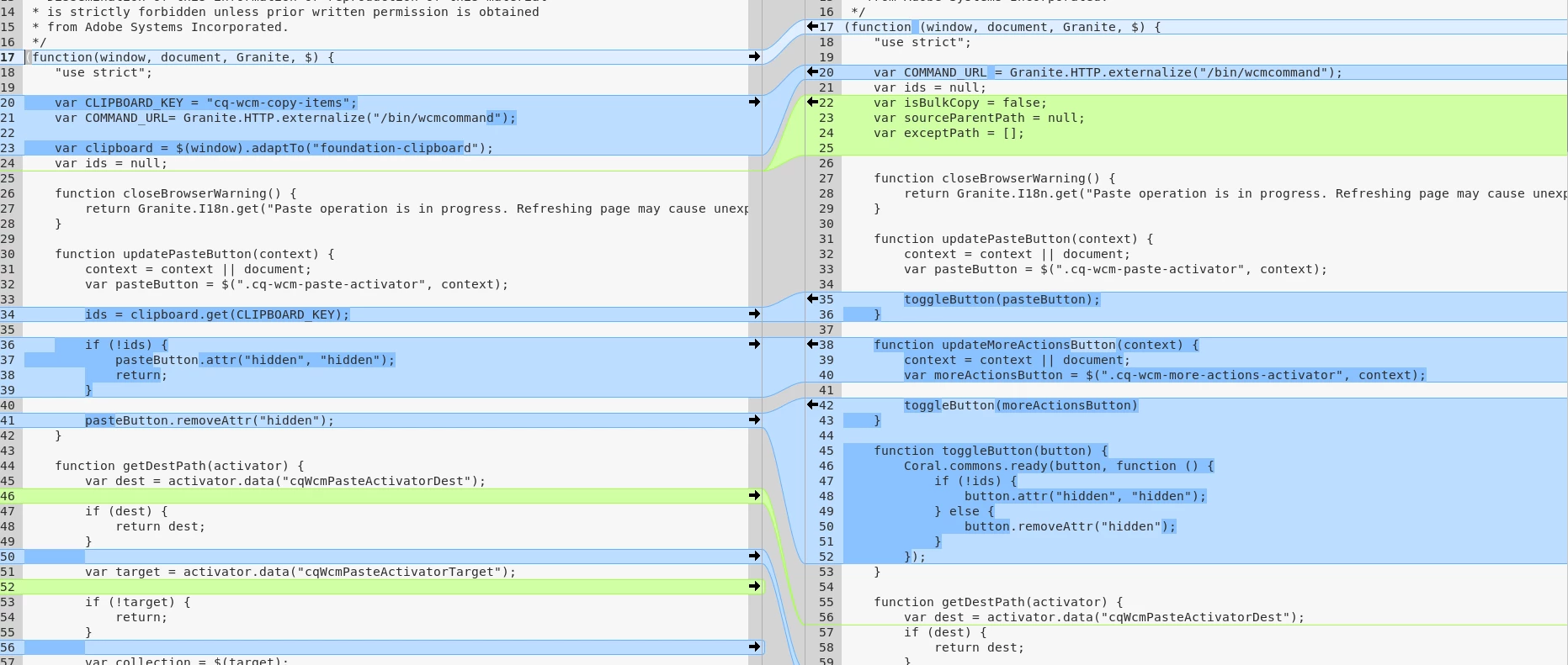 /apps/cq/gui/components/common/wcm/clientlibs/wcm by overlaying (shadowing) the JCR path at /libs/cq/gui/components/common/wcm/clientlibs/wcm might be incompatible after update and might need some adaption.