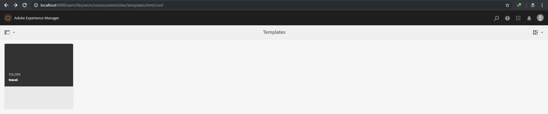 Yet still I'm unable to see the template here (never-mind my port 8080, I configured it that way)